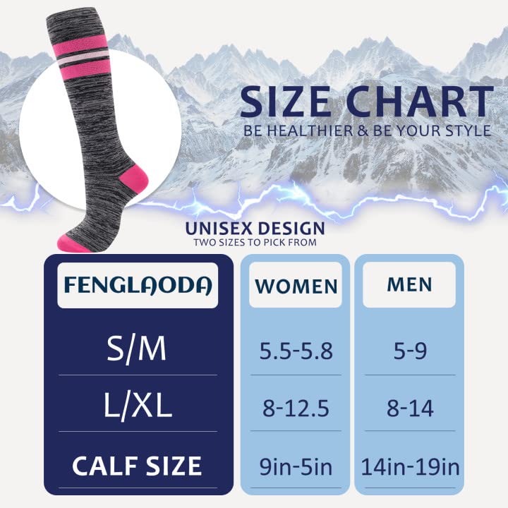 - fenglaoda compression socks come in many unique designs, non-slip ribbing, progressive compression, thickened heel and toe, and arched support;compression socks knee high also protect calves and ankles.